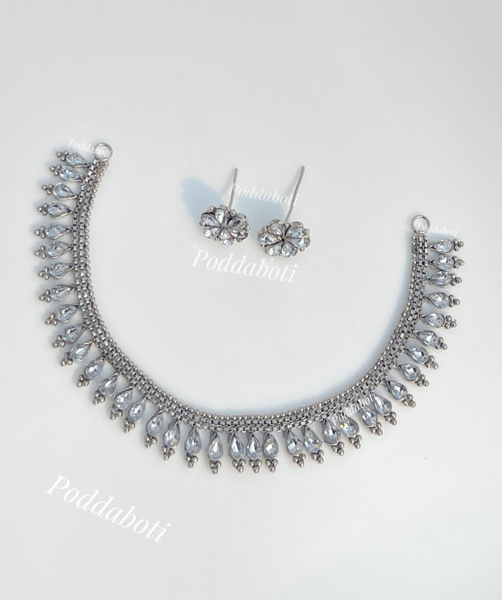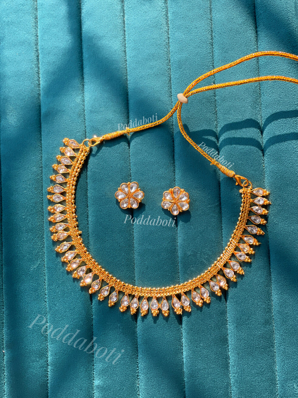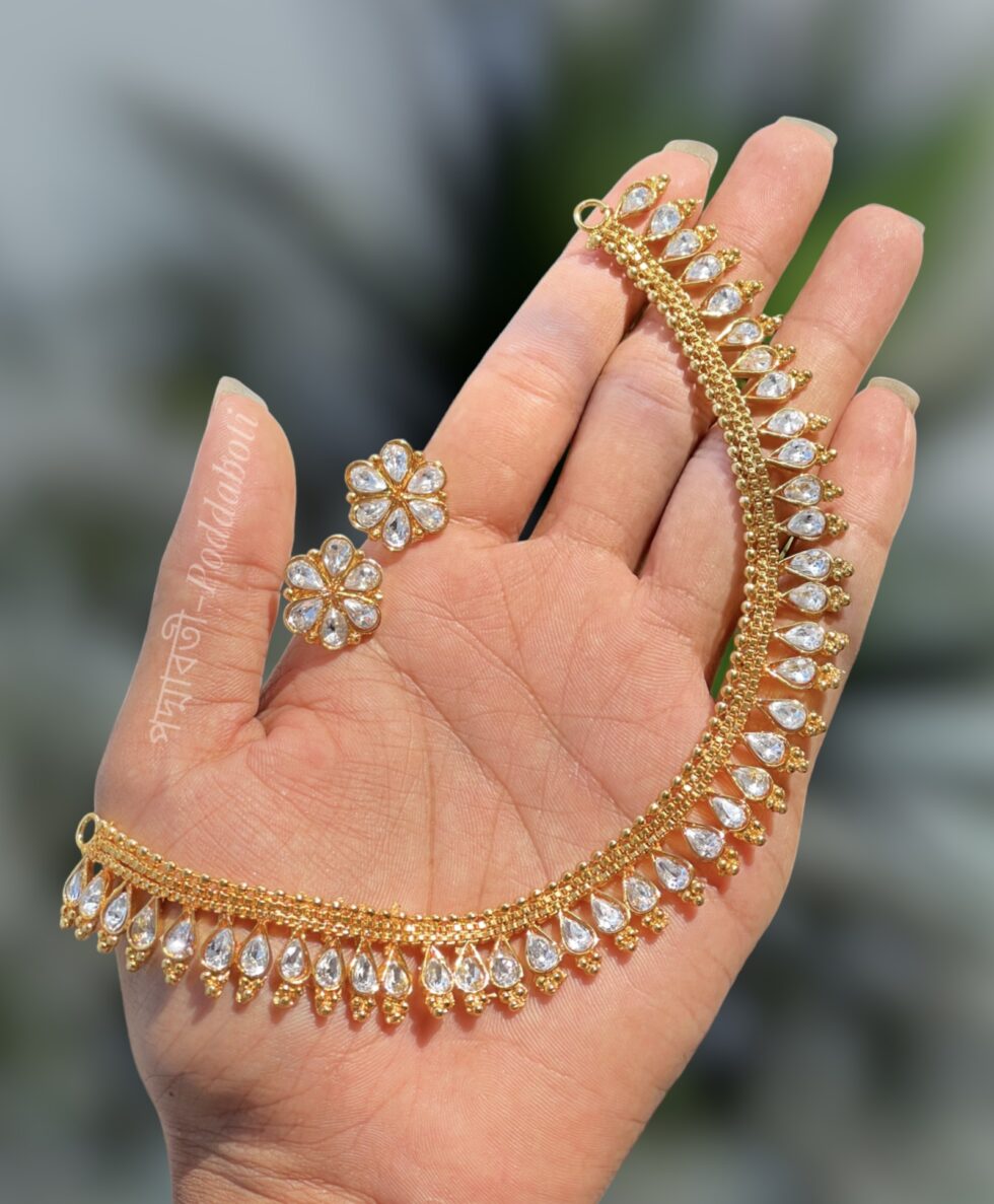 সুন্দরভাবে প্লেটেড এই নেকলেস আপনার গলার সাজে আনবে মাইল্ড শাইন, আর ছোট ইয়ারিংসগুলো দিবে কোমল ও পরিপাটি লুক।