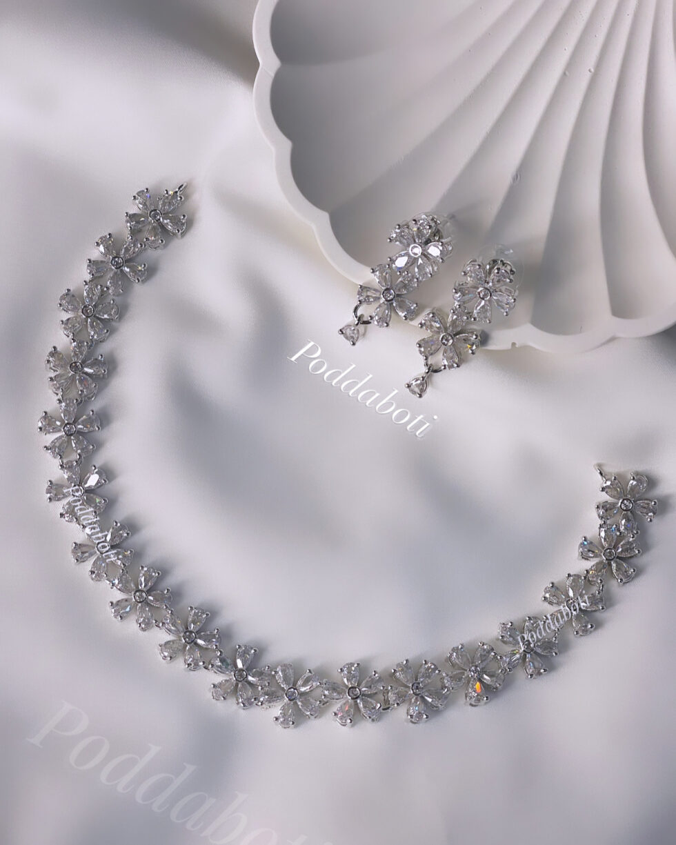 চমকপ্রদ এই ডায়মন্ড নেকলেস সেটটি আপনার সৌন্দর্যে যোগ করবে রাজকীয় আভা। ঝলমলে ডায়মন্ড কাট ডিজাইন এবং নিখুঁত কারুশিল্পের সংমিশ্রণে তৈরি এই সেটটি আপনার যেকোনো পার্টি, বিয়ে বা স্পেশাল ইভেন্টের জন্য পারফেক্ট পছন্দ।